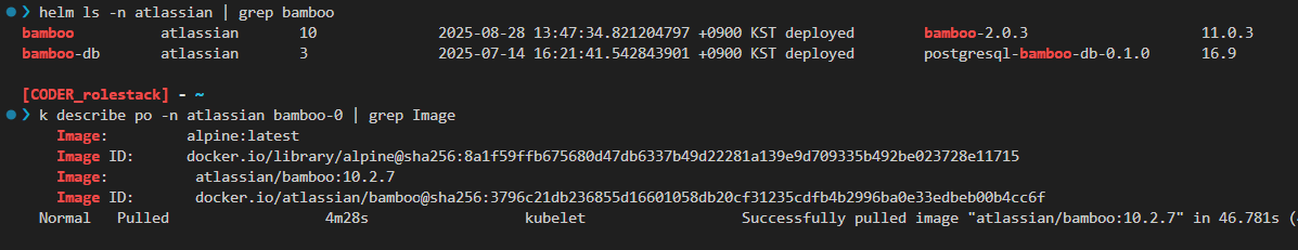 - Bamboo deploy(replicas=1 → replicas=0) with empty data(application-data, shared-home)